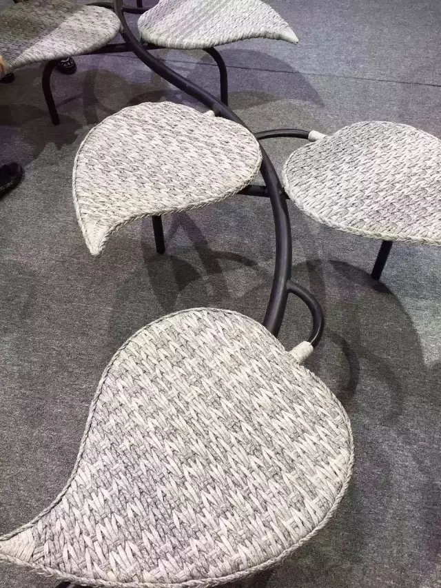 杜玛:现场摆放的产品几乎都是度假系列的户外产品,采用编织工艺,目前投放市场主要为包括成都,杭州在内的一线和新一线城市。