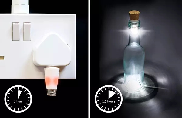 也许你会说上面那些灯离我们的生活太远了。那你可以试试这款灯。设计师 Steve Gates 利用废弃的酒瓶子做成了一款台灯。这款可充电瓶灯造型像是一个软木塞瓶盖,盖子可以拔下来,通过 USB 口充电,以 LED 灯为光源。有了它,轻轻松松你就可以把没用的空瓶子变成一款调性十足的台灯。