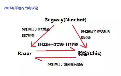 以下是个草(丑)图大家可以感受一下(仅列出16年的诉讼,15年底Segway还在地院诉过Razor):